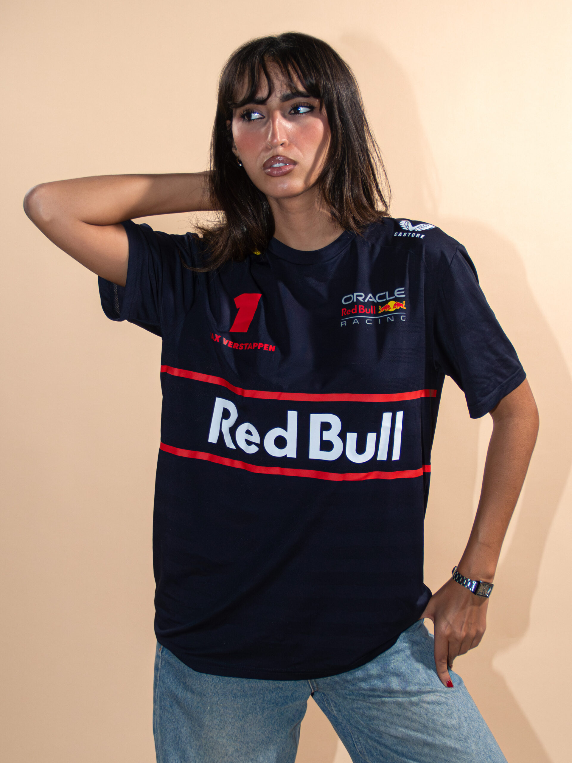 le t-shirt officiel de Redbull Racing de 2025 tague Max Verstappen est disponible chez THEGRIDZ !